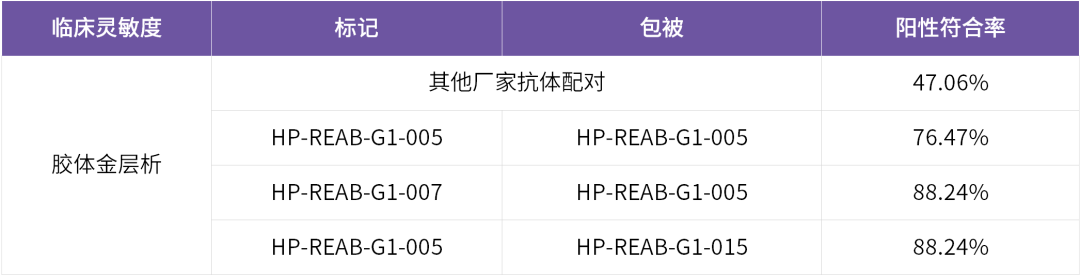 菲鵬生物HP抗體配對(duì)在膠體金層析平臺(tái)上臨床樣本陽(yáng)性符合率較高。