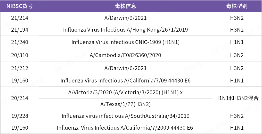 菲鵬生物針對2023年春季國內(nèi)流行的FluA/H1和FluA/H3亞型流感病毒,推薦配對抗體原料重點驗證毒株信息如表2: