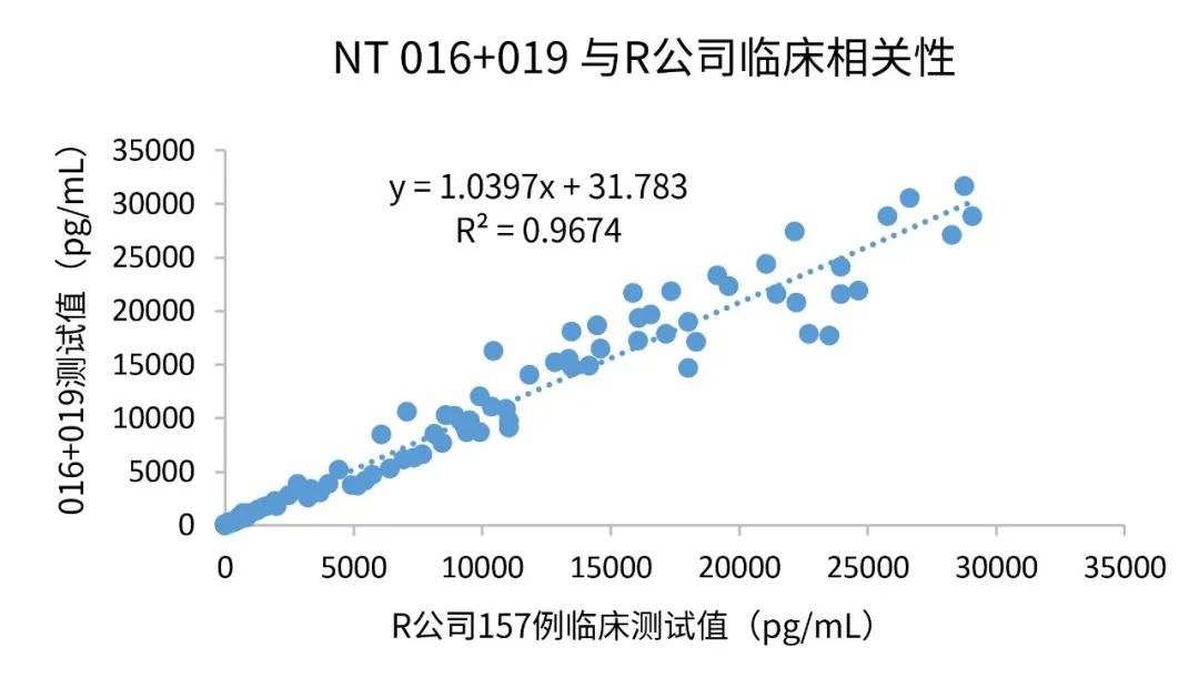 在免疫熒光平臺上,同R廠家進(jìn)行了157例臨床樣本比對,臨床相關(guān)性R2≥0.96。