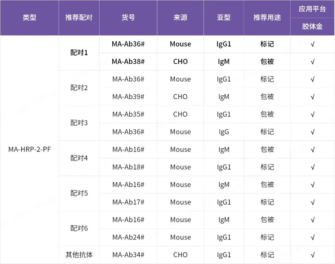 菲鵬生物HRP2原料具有高靈敏度和高惡性瘧疾特異性,相比于其他檢測標志物,在非HRP2基因缺失的地區(qū),HRP2的檢測是更為推薦的檢測手段。菲鵬生物持續(xù)升級的HRP2產(chǎn)品,配對性能處于國際領(lǐng)先水平。