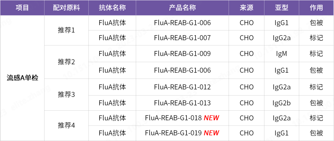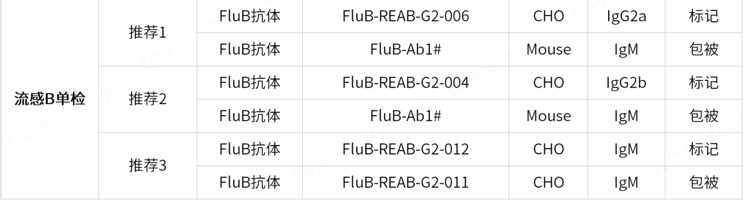 表1. 菲鵬生物流感A、B 單克隆抗體原料