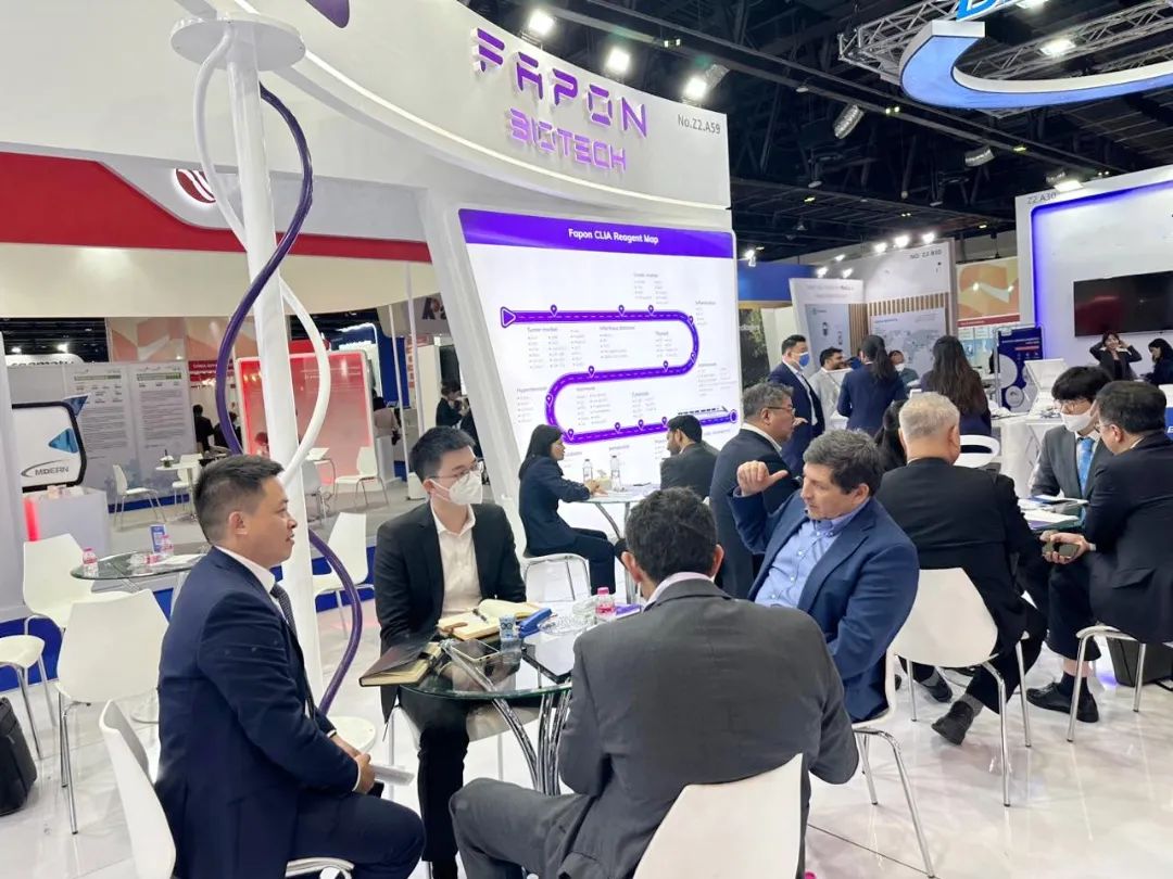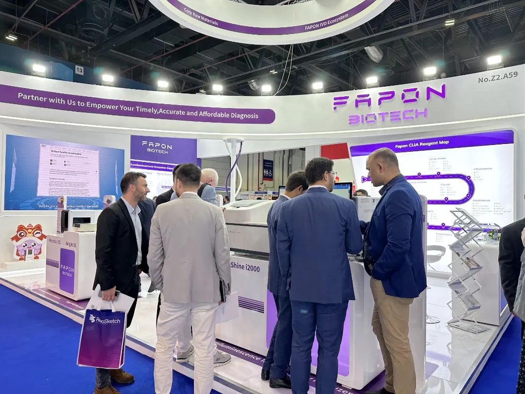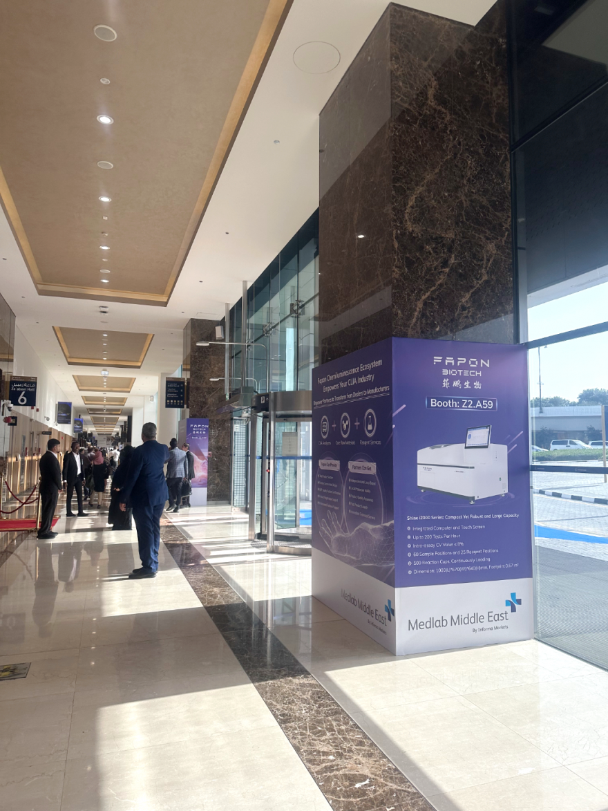 依托Medlab M.E.國際性專業(yè)貿(mào)易平臺,菲鵬生物向全球展示了化學(xué)發(fā)光、分子診斷和臨床生化等產(chǎn)線的整體解決方案、儀器平臺最新成果,以及開放平臺生態(tài)發(fā)展新理念,展臺現(xiàn)場吸引了世界各國專業(yè)人士前來參觀和咨詢。本次展會是菲鵬生物聚焦全球化戰(zhàn)略的又一重要布局,也為菲鵬生物加快中東地區(qū)的本土化建設(shè)奠定了穩(wěn)固的基礎(chǔ)。