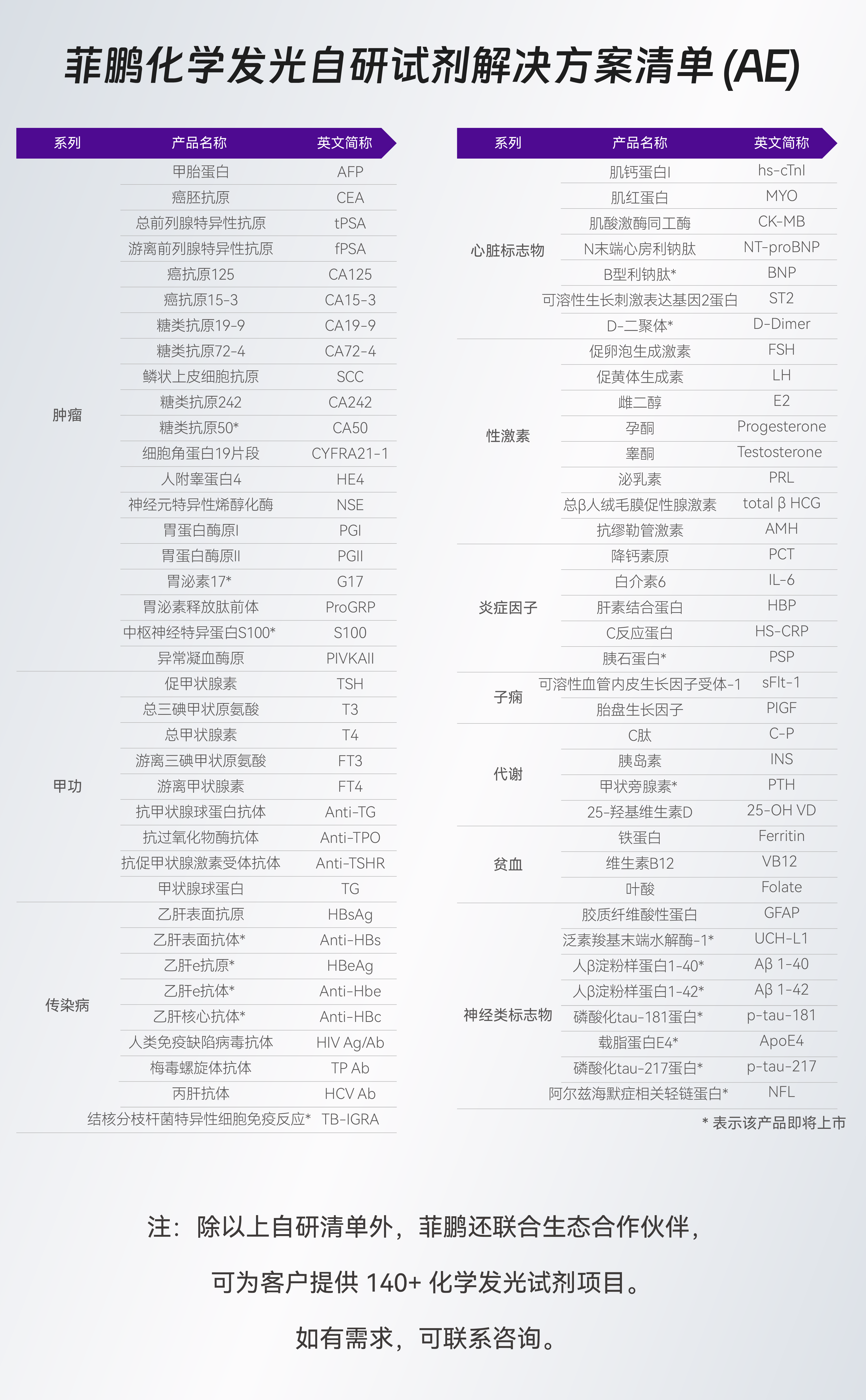 菲鵬生物化學(xué)發(fā)光試劑解決方案清單(AE)